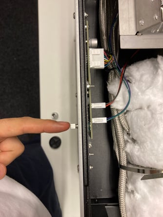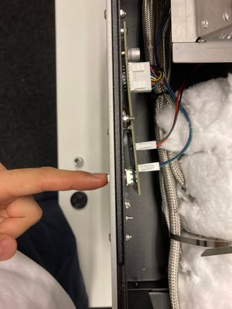 The following two pictures show the metal pin's connection with the display PCB. This is a top down view that can be accessed once you remove the top panel of the machine.