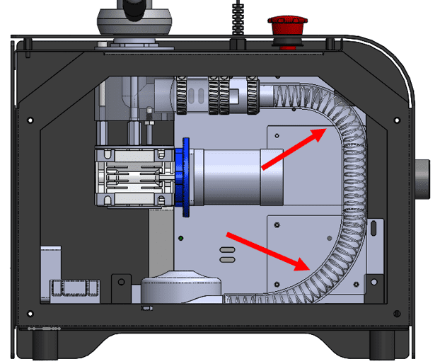 Please check if the air tube and the rest of the components are correctly placed, see the red arrows in the picture above. There should be no kinks in this tube.