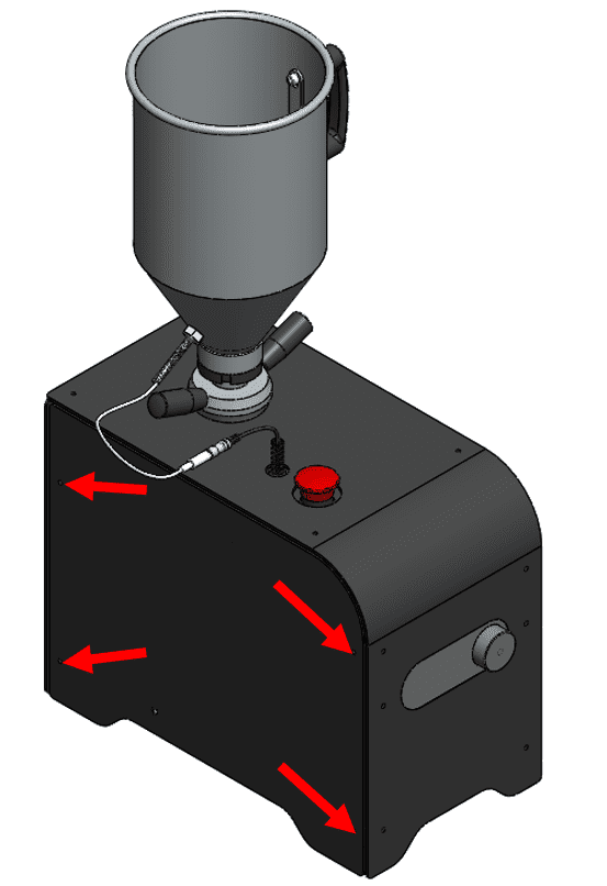 For checking this, would you be so kind to remove one side panel to check how to air tube is attached? In the two pictures below, you can see how to remove one side panel.- Remove the four bolts indicated with the red arrows.