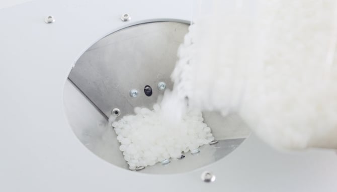 Once there is clear HDPE coming out of the nozzle, without white spots/flakes of the DevoClean MT, then the machine is clean enough and ready for the next material.