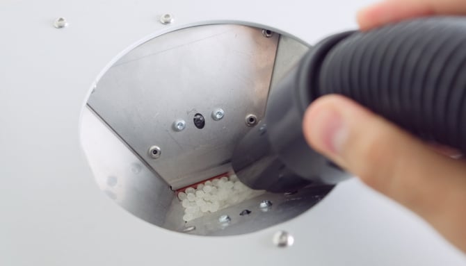 Again, when few to no granulates are left, put in the next portion of purging material, around 200 grams.